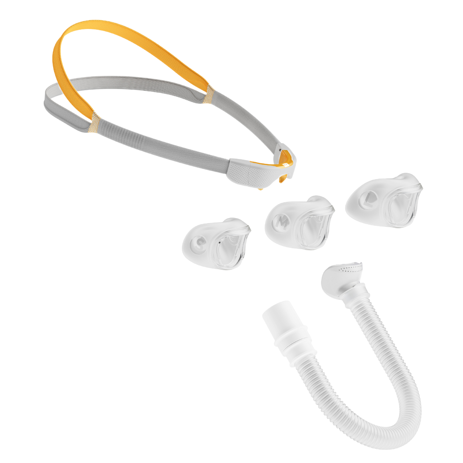 Kompatibilität mit Nasen- und Nasenpolsterkissen: Die Maske bietet zwei austauschbare Kissenoptionen – Nasenkissen (in den Größen S, M, L, W) und Nasenpolsterkissen (in den Größen S, M, L) – für individuellen Komfort. (Somnishop Deutschland)